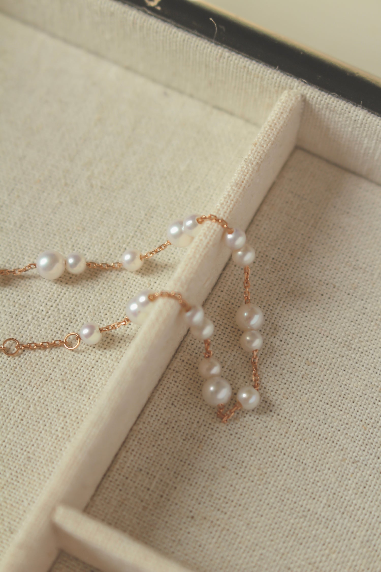 This delicate and feminine bracelet freshwater mini pearls in 18K solid gold and our Haylie Étoile Charm in rose gold.