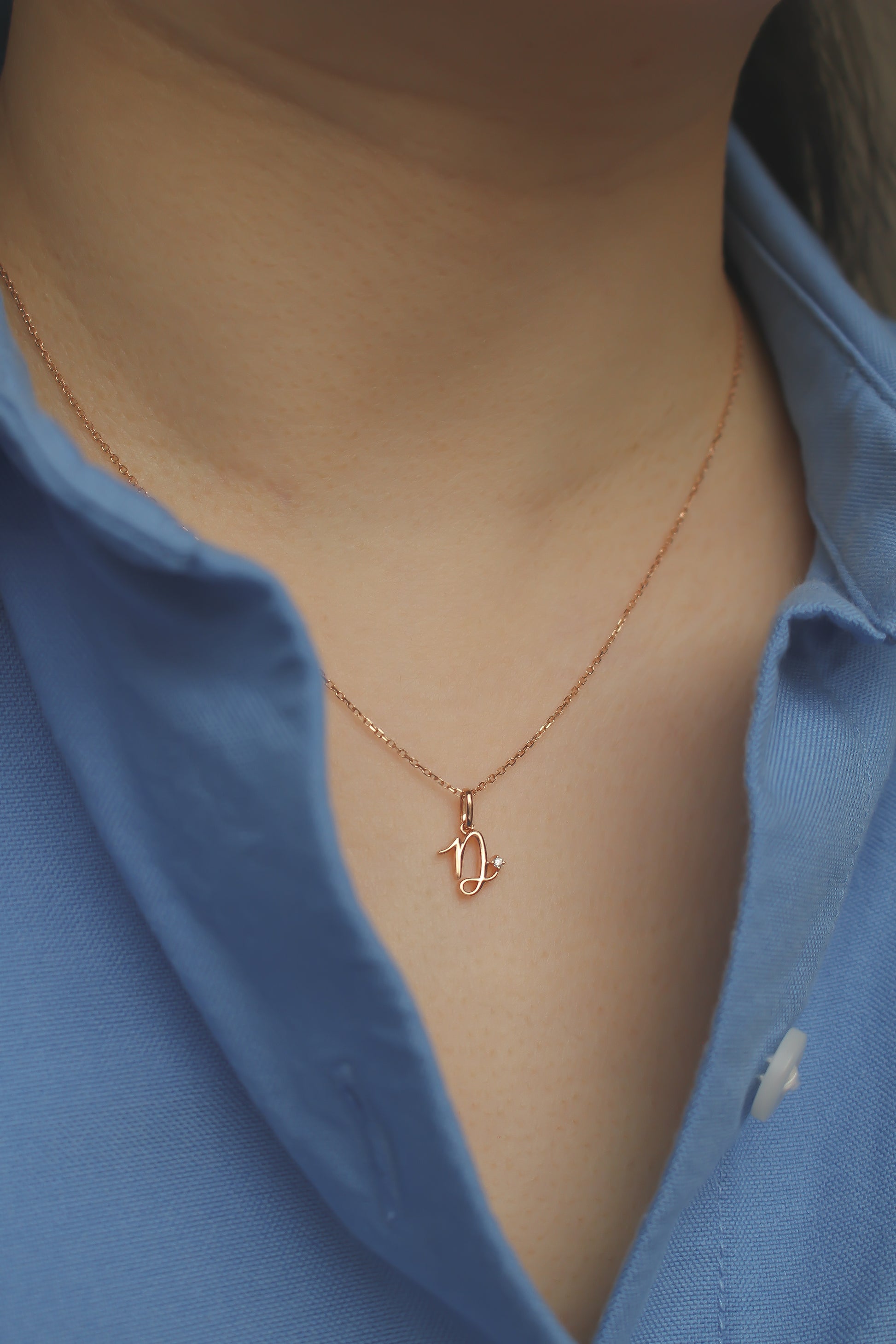 Audrey Gold Initial Pendant with Tiny Diamond (Medium)
