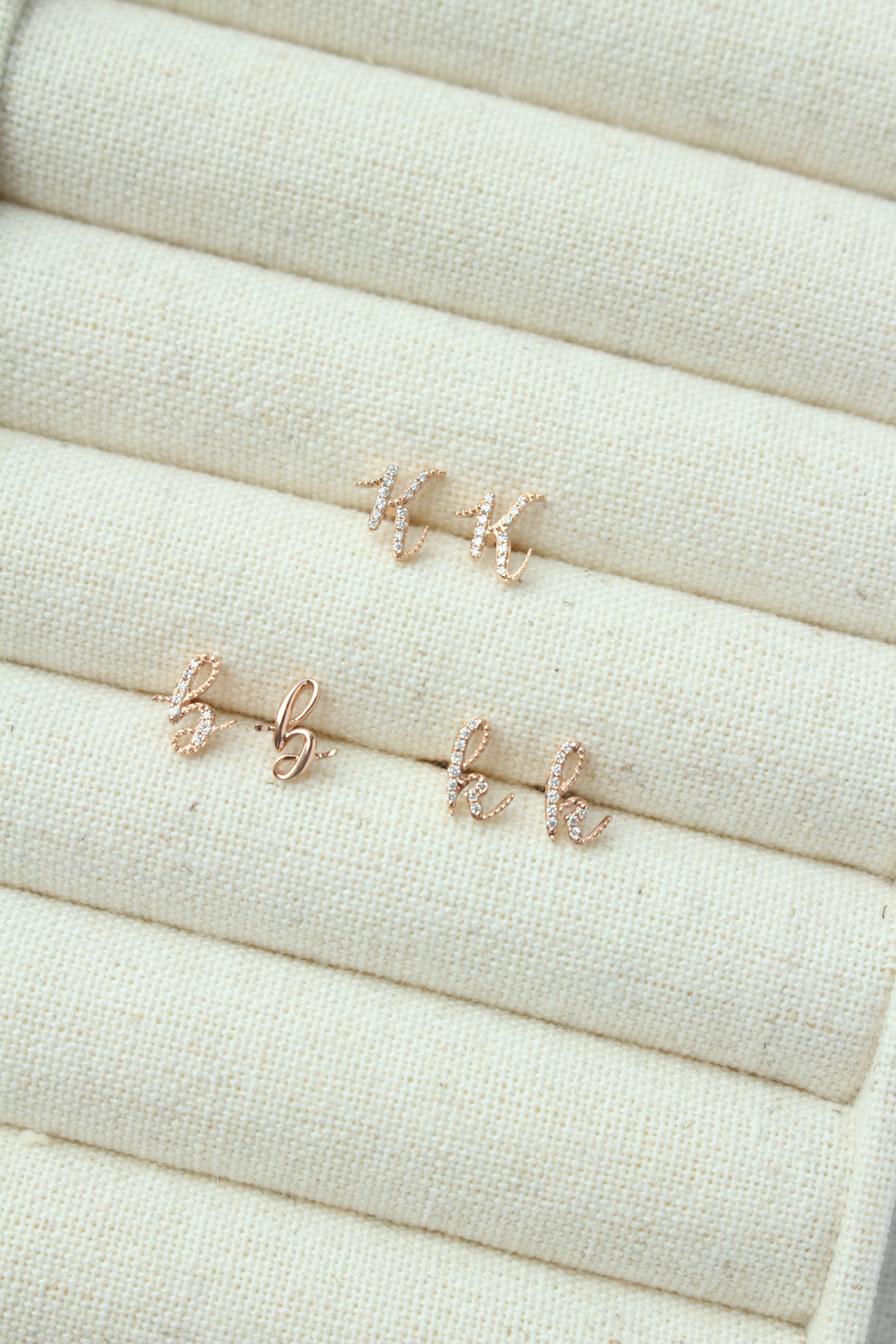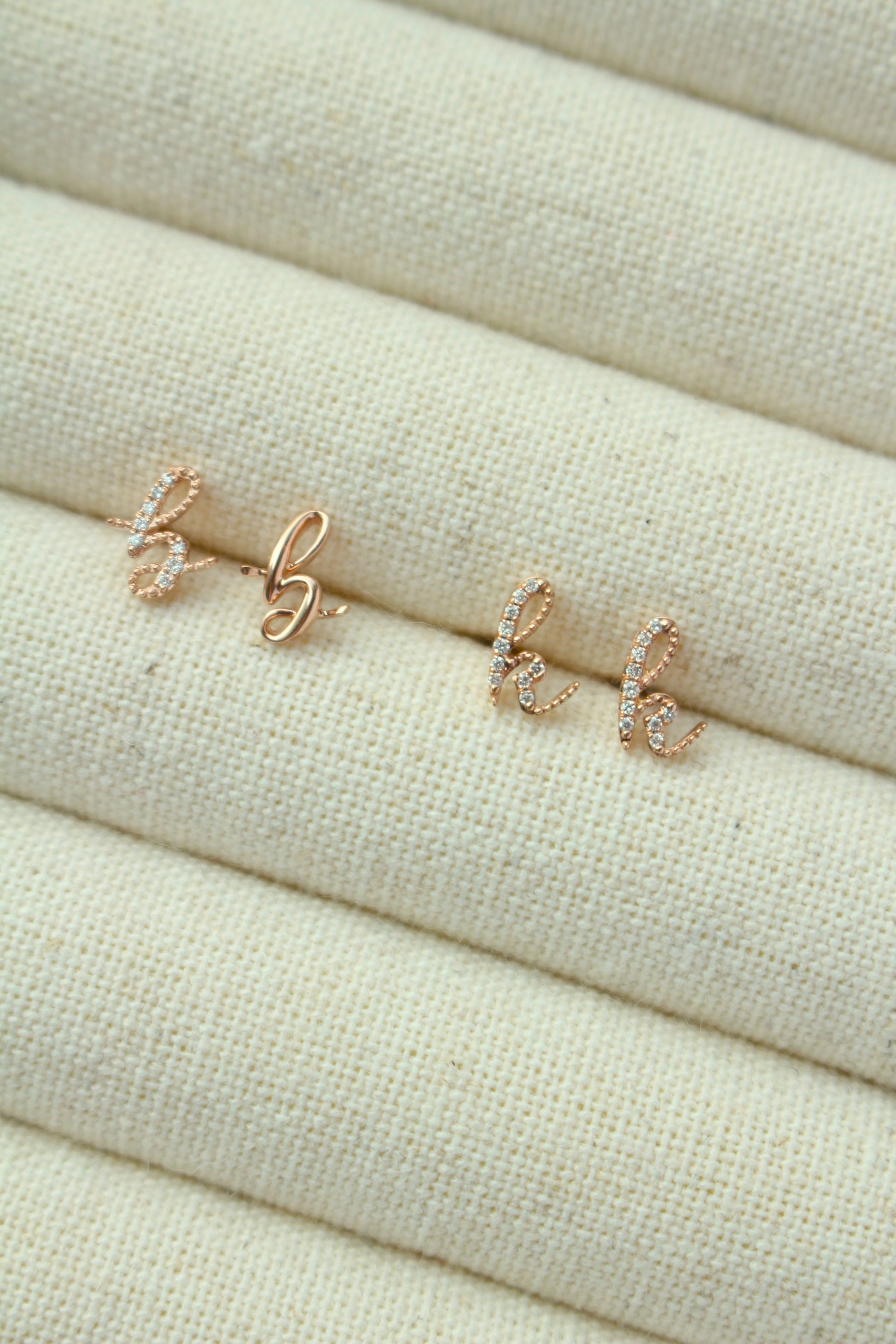 这些耳环是精致珠宝的极致简约之作。这些小写字母展现了书法的精髓,单独手工制作,突出我们美丽的草书字体的每一个笔画。喜欢这些吗?看看我们的Audrey纯金大写字母耳环